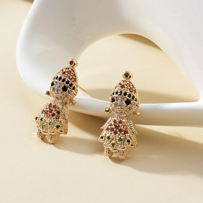 New Copper Colorful Human Form Cubic Zirconia Stud Earrings Fashion Jewelry Earring Female Wedding