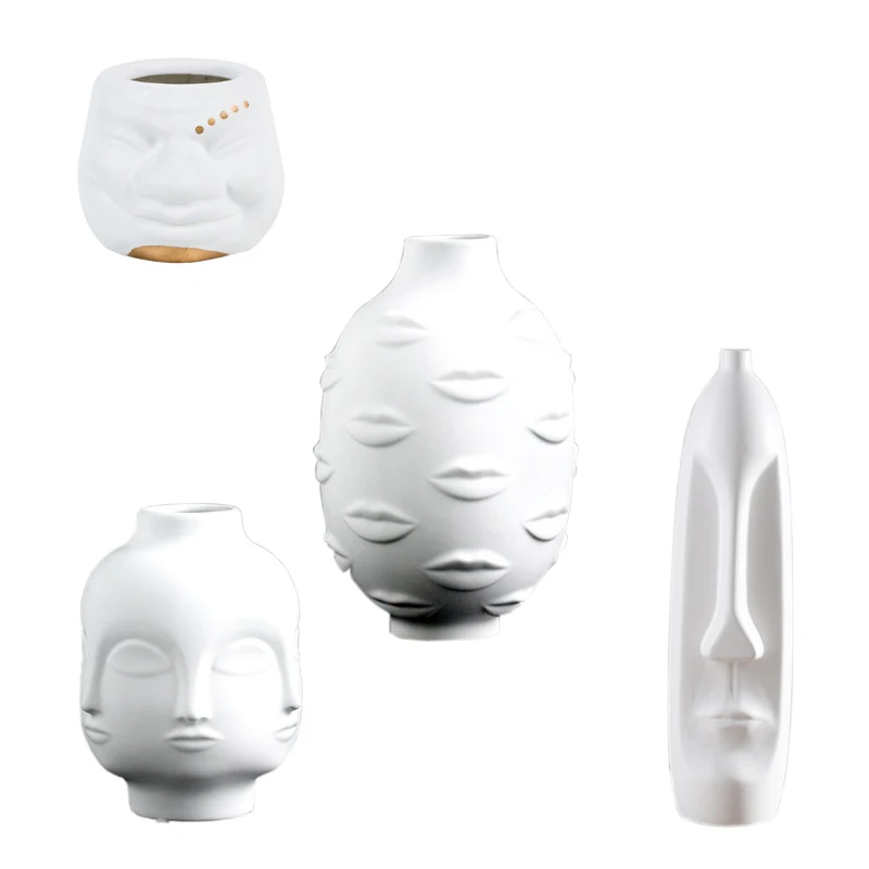White Ceramic Craft Lady Face Head Planter Vase Face Vase for Flower Human Face Flower Vase Succule